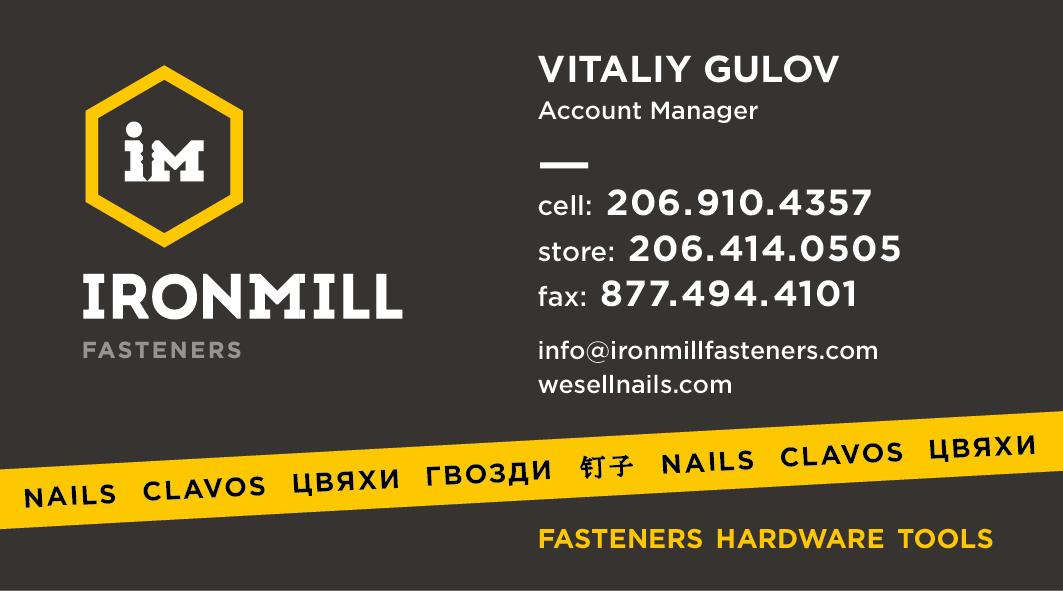 Как говорят в народе: «Язык до Киева доведёт». Наши визитки должны были не только довести до магазина, но и по дороге убедить, что покупать нужно именно в Ironmill Fasteners.
